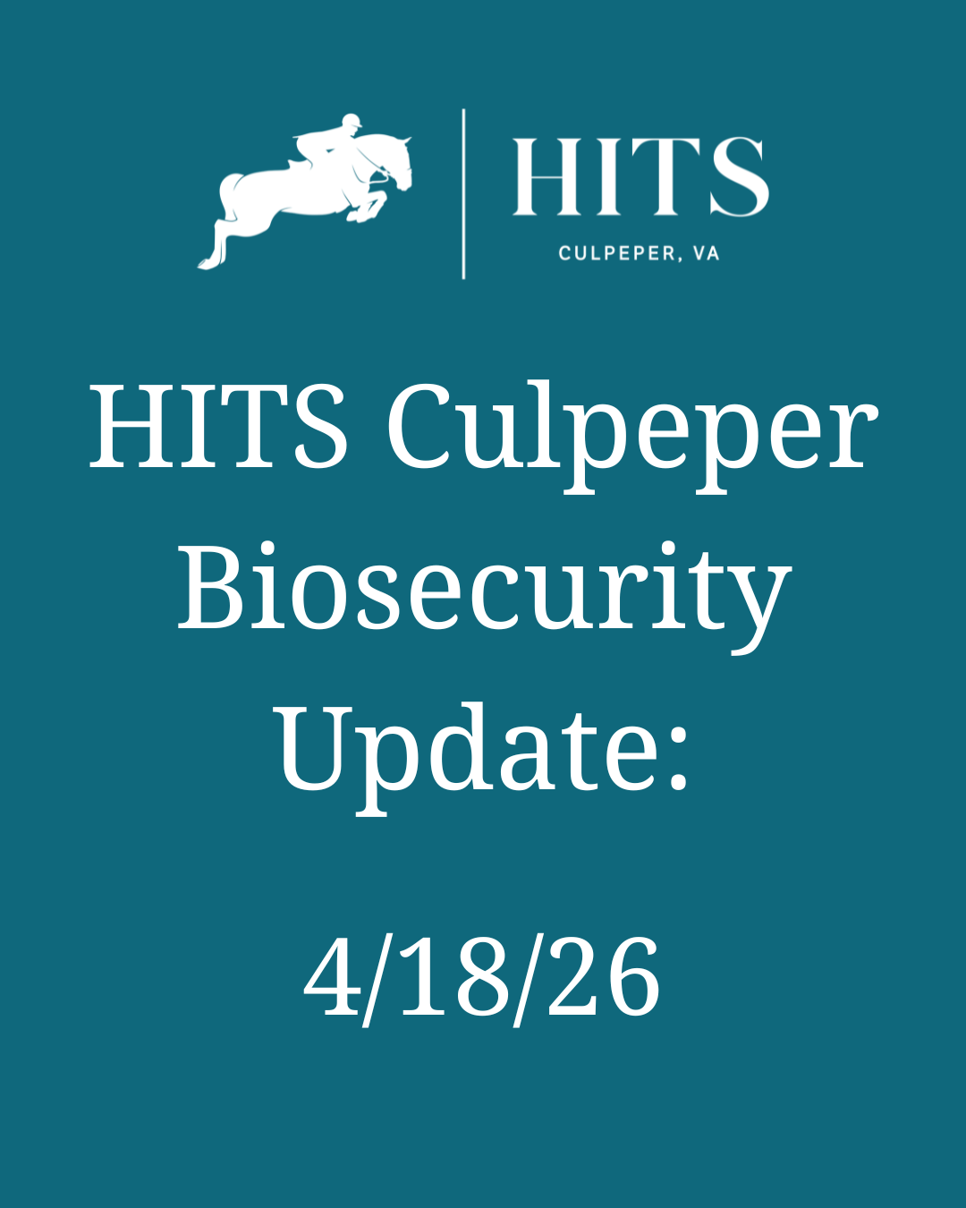 On Friday, April 17, 2026, HITS Culpeper Show Management was notified of a confirmed case of Equine Herpesvirus Myeloencephalopathy (EHM). The horse, a 21-year-old...