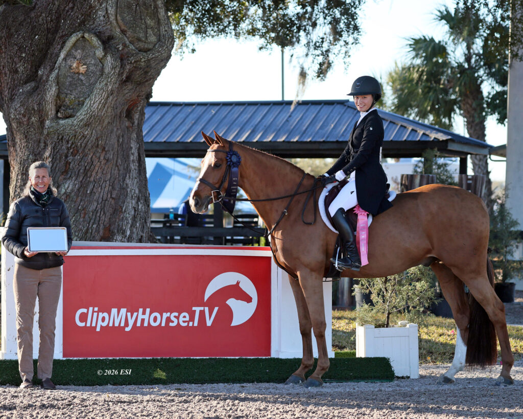 The penultimate day of prestigious World Champion Hunter Rider (WCHR) competition during the HITS Ocala Winter Classic debuted under a crisp Florida sunrise on Saturday, February 7, 2026, as pairings put the finishing touches on their warm up for the second $2,500 ClipMyHorse.TV Classic Qualifier of the season. Crescendoing a week full of elite hunter performances, the event was the second of eight qualifying classes taking place across HITS venues ahead of the prestigious $300,000 ClipMyHorse.TV 3’6” Open Hunter Classic Final and brand-new $50,000 ClipMyHorse.TV 3’ Junior and Amateur Hunter Classic Finals, all taking place at HITS Hudson Valley in Saugerties, New York, in September. Topping the field and punching her ticket to the final, 18-year-old Emma Bao of Ottowa, Ontario, piloted Baker’s Dozen to the win.
