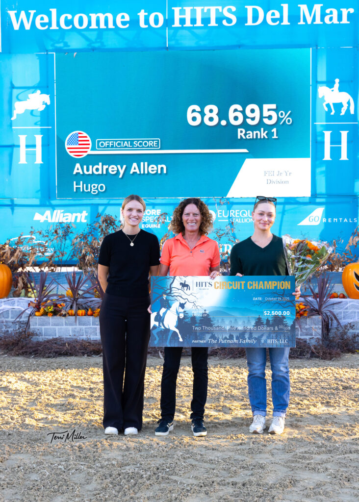 HITS Del Mar concluded its dressage season on October 17-19, 2025, with the HITS Del Mar Dressage Howl-O-Ween Show. This frightfully fun event featured a thrilling casino night party, creative costume exhibition classes, and special recognitions that had been accumulating throughout the 2025 HITS Del Mar Dressage season. The Putnam Family presented the Dressage Circuit Champion Award, a $2,500 prize given to each rider from six different divisions who competed in at least four of the six HITS Del Mar Dressage Shows and earned the highest average scores from those events.