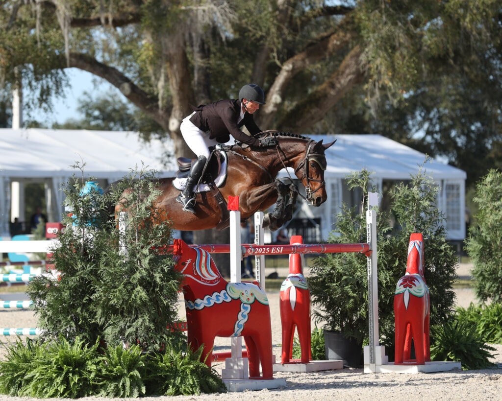 The grounds of HITS Post Time Farm in Ocala, Florida, came back to life during the week of December 8-14, 2025, as competition officially kicked off the venue’s Holiday Series. Local competitors and long-distance travelers alike returned to the iconic property for yet another exciting season. Show jumping sport came to a head on Saturday afternoon, December 13, as 27 horse-and-rider combinations vied for the top call in the week’s marquee event, the $24,500 FarmVet Grand Prix. Following a string of impressive jump-off rounds, the win ultimately went to Morgan Ward-Knowlton, seamlessly navigating her new mount, Qornet vd Bisschop, to an unbeatable time.