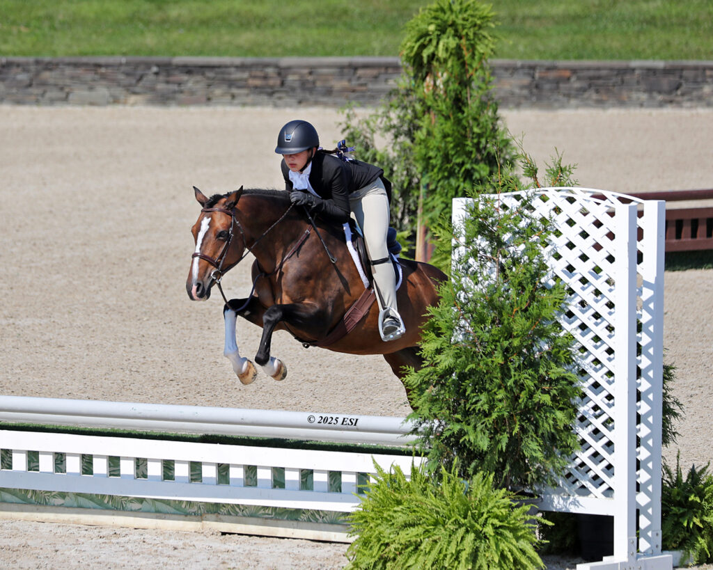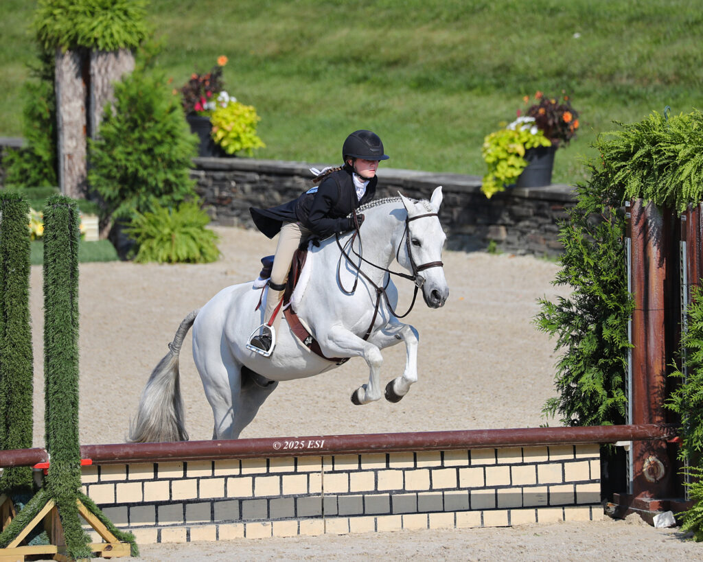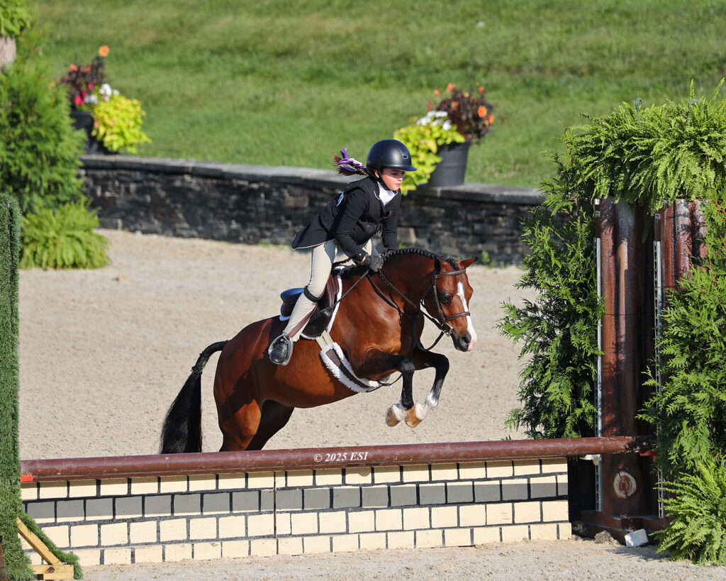 Piloting the Swede Ventures LLC’s 17-year-old Welsh Pony Cross mare through the three phases of competition — the model, the under saddle, and the over fences class — Warren received a total combined score of 82.70 in the Children’s Pony Hunter Finals – Small division. The pair received the division championship for their efforts, and at the completion of all three divisions, stood out with the highest overall score.