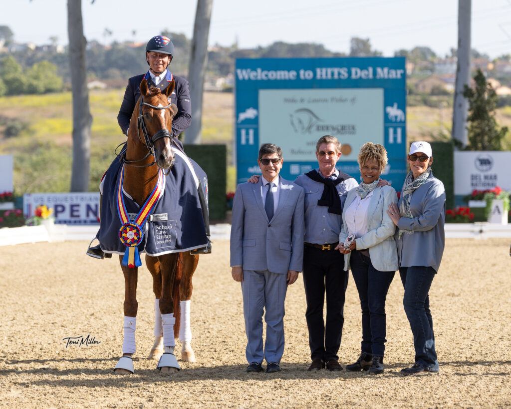 Several perpetual trophies were awarded during the prestigious HITS Del Mar National Horse Show – Dressage Week. Notably, Terri Sue Wensinger (USA) and Gorgeous received the Hap Hansen Perpetual Trophy for the National Intermediare Freestyle. Brittany Eastgate Simpson (USA) and For Fun were presented with the Rubino Bellissimo Trophy for the CDI Intermediare Freestyle.